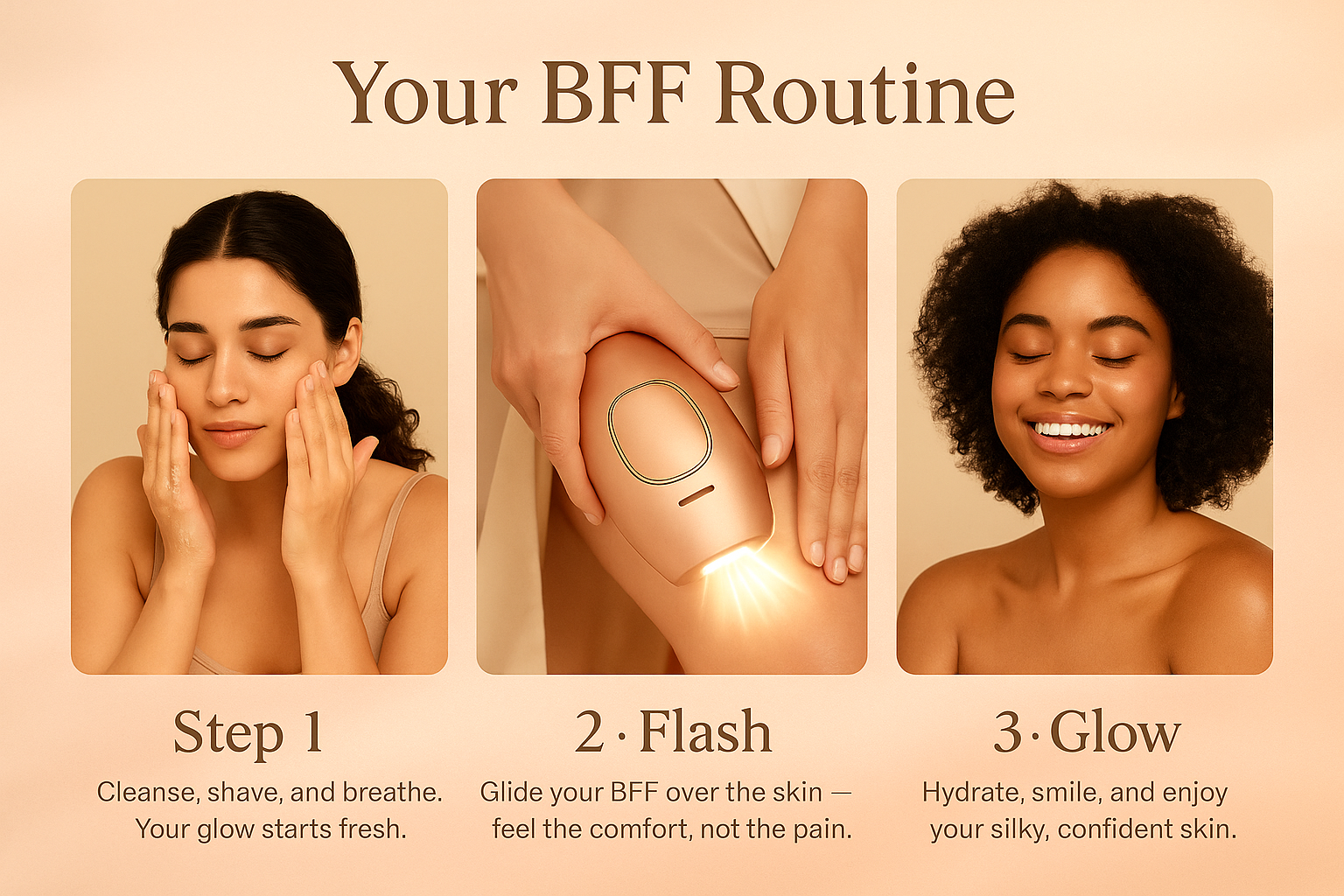 Your BFF IPL device is designed to be gentle and effective on all skin types — including sensitive skin.